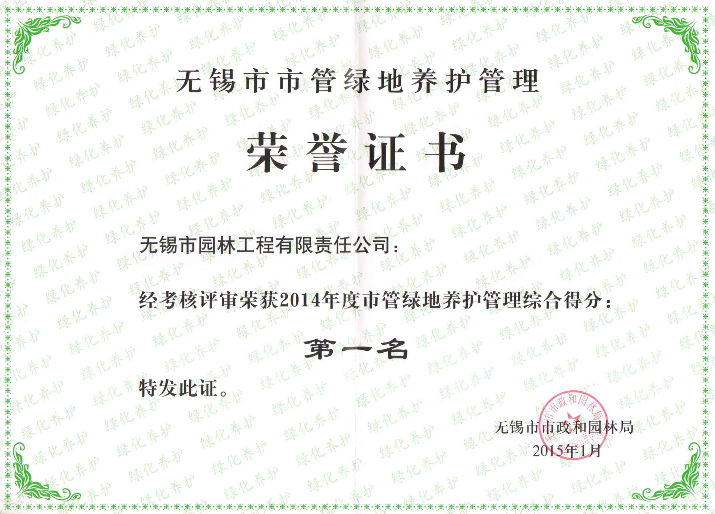 2014年度市管綠地養(yǎng)護管理綜合得分