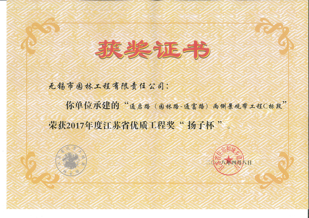 2017“揚子杯”—通啟路兩側(cè)景觀帶工程C標段
